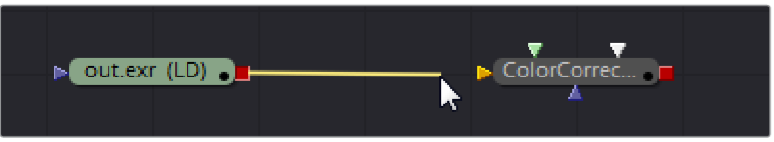 たとえば、イメージをカラーコレクタツールに接続するには、ローダツールの出力ノットをクリックし、カラーコレクタの入力ノットに接続をドラッグします。