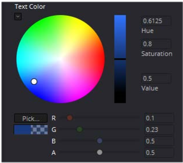 [カラーピッカー]は、パラメータがテキスト+ツールの[塗りつぶし]または[アウトライン]のように、値として色を必要とする場合はいつでも表示されます。