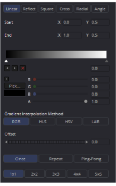 オフセットコントロールを調整すると、グラデーションの位置が開始マーカーと終了マーカーに対して相対的に移動します。このコントロールは、以下に説明するリピートモードとピンポンモードと組み合わせて使用​​すると最も便利です。