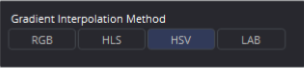[勾配補間法]ボタン配列を使用すると、カラーストップ間の色を計算するために使用する色空間を選択できます。