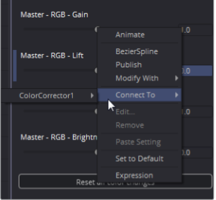 - Connect Toサブメニューで、アニメートされたパラメータの名前を選択します。