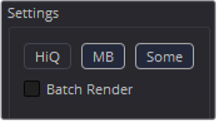 Preview RenderダイアログのSettingsセクションには、フリップブックプレビューの全体的な品質と外観を決定する3つのボタンがあります。これらのボタンは、レンダリング時間にも大きな影響を与えます。
