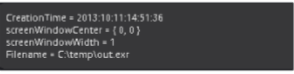 [画像情報]タブには、画像の上部に横棒が表示され、表示される画像のフレームサイズ、ピクセルアスペクト、および色深度に関する情報が表示されます。