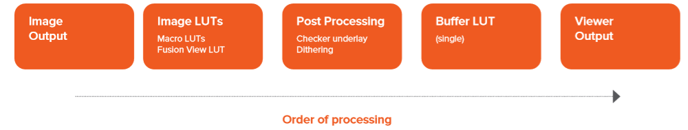 精巧なワークフローでは、施設では、画像が表示される前に複数のLUTを連続して適用できます。