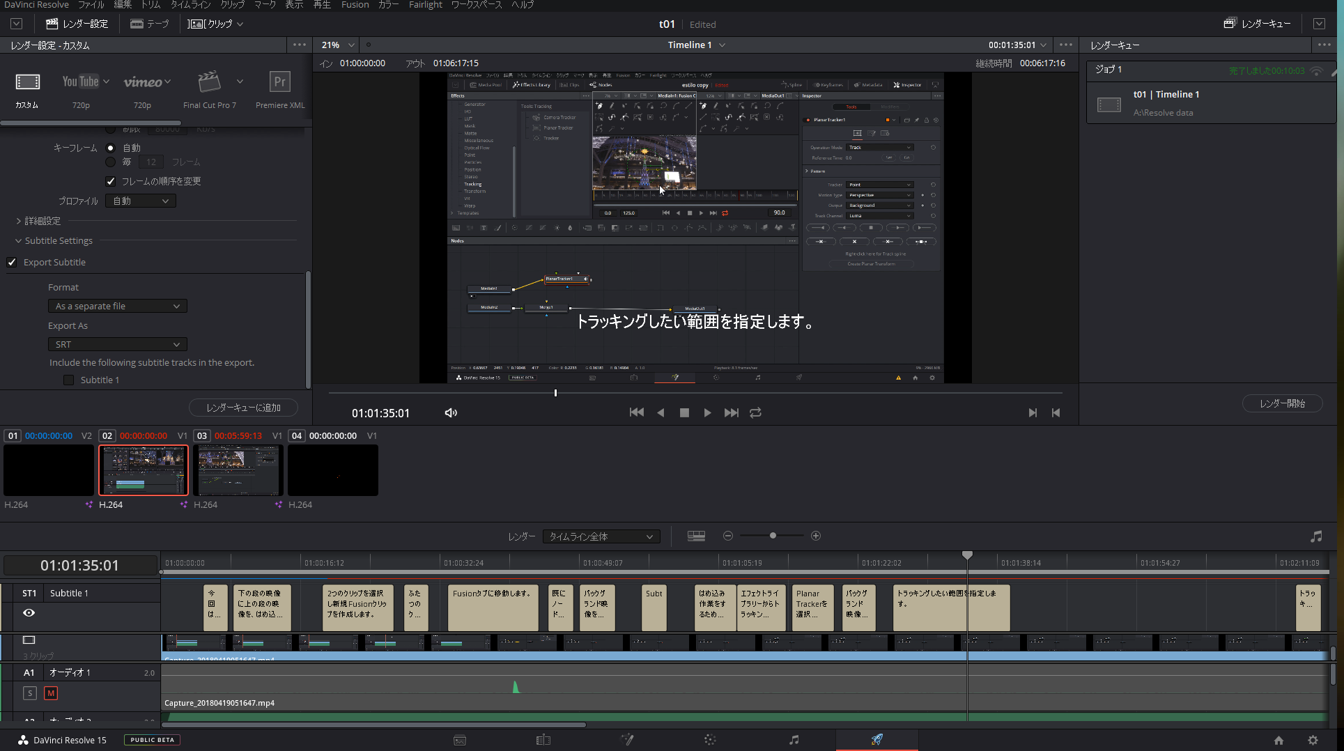 DaVinci Resolve 15 Studioパブリックベータ で、はめ込み合成のチュートリアルを作ったときに出力するとサブタイトルが映像に反映されなかったと書きました。