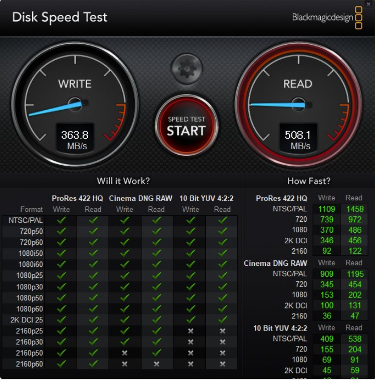多少数値は変わっていますが、ブラマジのスピードテストでは数値は上がっても使えない物が出てきています。(216P50DNGRAW)