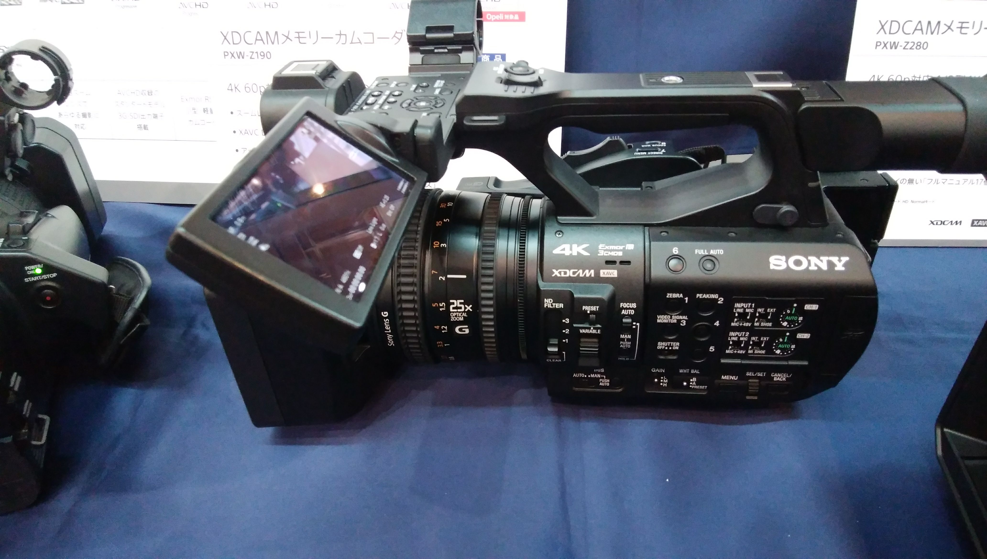 Panasonicやソニーのブースに行くと涎が出そうなカメラが並んでいて、そんな中、今度発売されるソニーの業務用ビデオカメラが展示されていました。