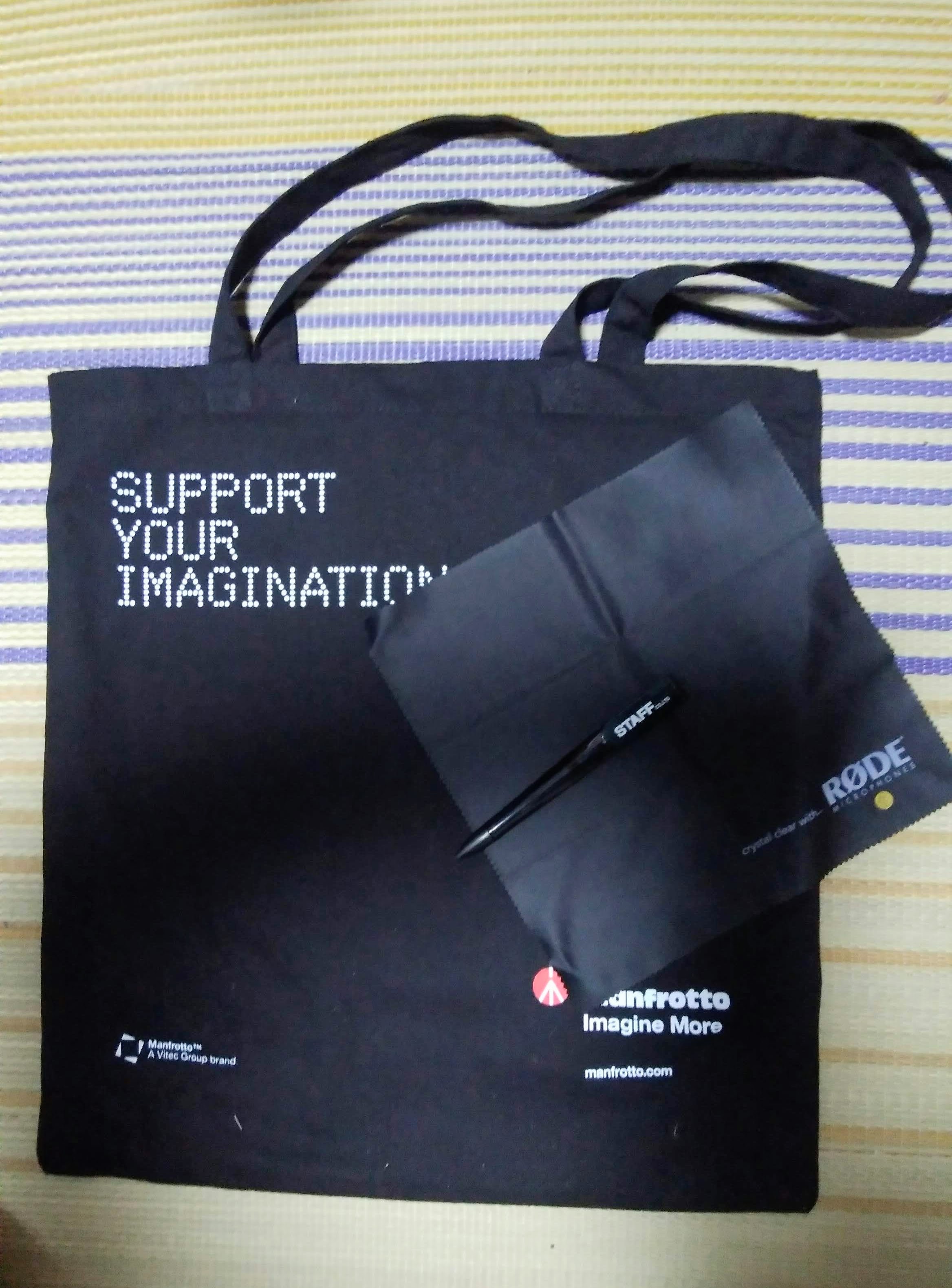 今回も、マンフロットさん、STAFFさん、RODEさんからノベルティを頂きました。