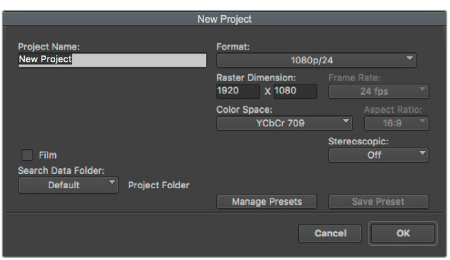3「フォーマット」ドロップダウンメニューでHD 1080> 1080p / 24を選択し、「OK」をクリックしてプロジェクトを作成します。