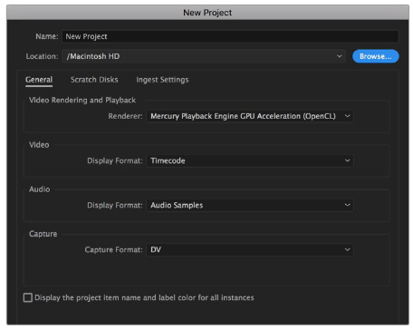Adobe Premiere Pro CCでプロジェクト名とプロジェクトオプションを設定する