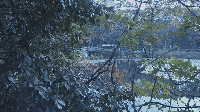 その後、彩度を入れ、コントラストを調整することで、あの青ざめた風景が目で見た感じの絵になりました。