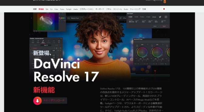 詳細をクリックすると、上記のサイトへ移動しDaVinci Resolve 17の魅力を寸分無く説明してくれます。