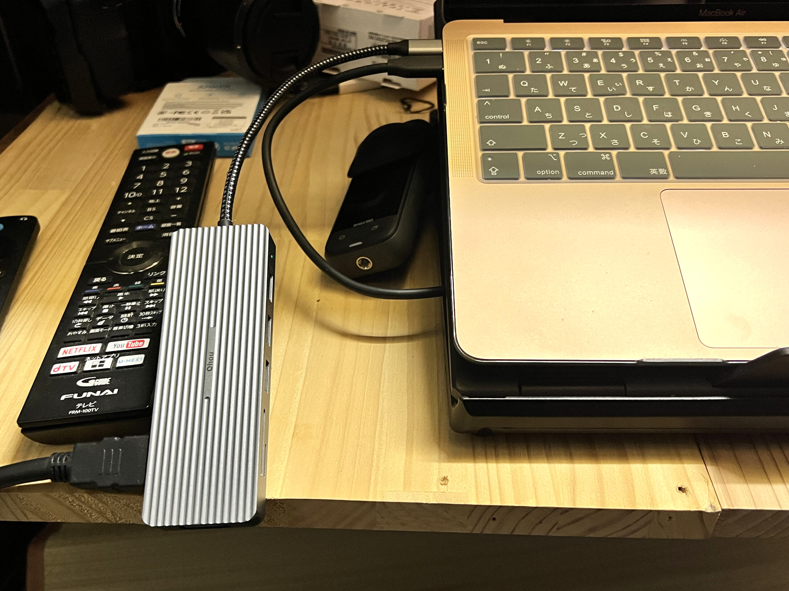 ただ一つ問題なのは、SSDとUSBハブを使うと本体に充電出来ない問題発生です。