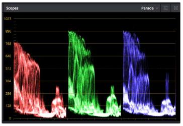 色のグレードを変えるもう1つの方法は、内蔵のスコープを使用してショットのバランスをとることです。
