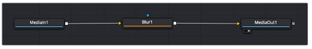 1「エフェクトライブラリ」で、「トラッキング」ツールを選択し、それを「mediain」ノードと「mediaout」ノードの間の行にドラッグします。次に、トラッカーノードをクリックして、インスペクターでそのプロパティーを表示します。