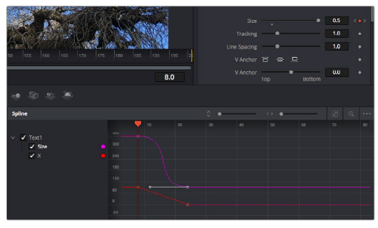 これによりトラッカーからのテキストにトラッキング位置データが適用されます。テキストのオフセットを変更する場合は、インスペクタパネルの「トラッカー」タブをクリックし、xおよびyオフセットスクロールホイールを使用して位置を変更します。