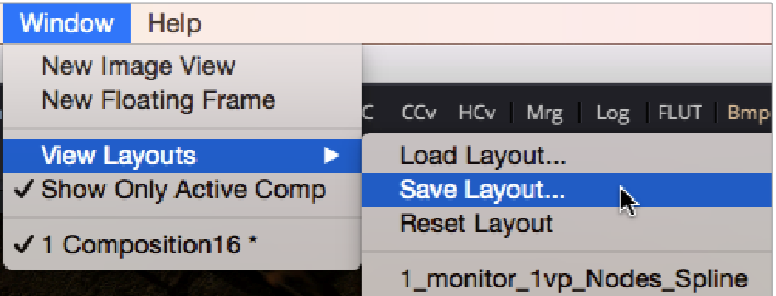 レイアウトツールバーには、4つのプリセットパネルレイアウトが用意されています。最初の2つは、1人のモニターと2人のモニターの間で切り替わり、Fusionウィンドウの右側全体に沿ってフルサイズのコントロールパネルを残します。